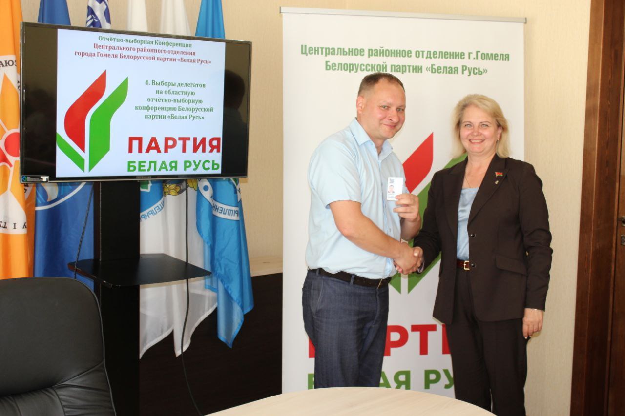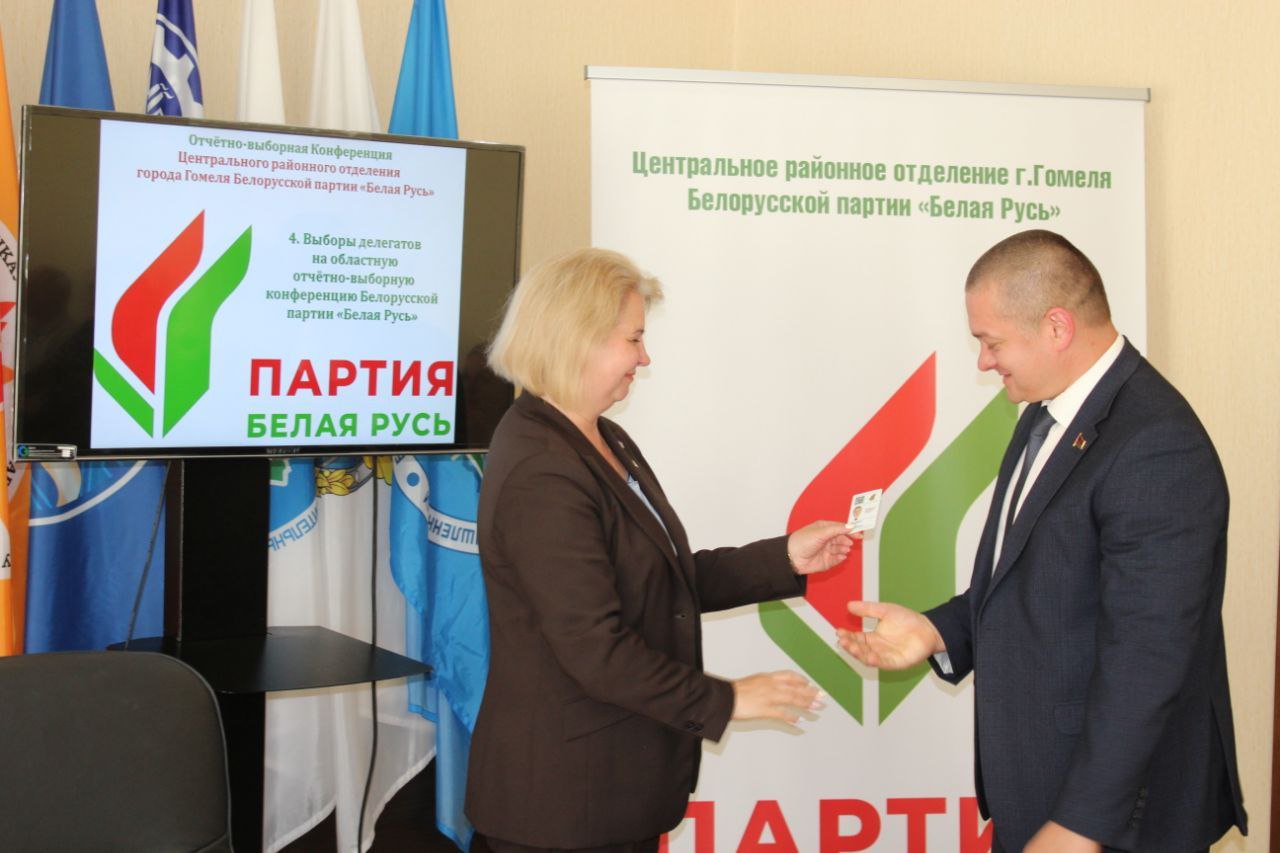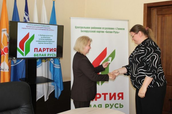 Завершающим этапом Конференции стало вручение членских билетов вновь прибывшим членам Белорусской партии «Белая Русь» председателем Центрального районного отделения г.Гомеля Белорусской партии «Белая Русь» Ольгой Доценко.