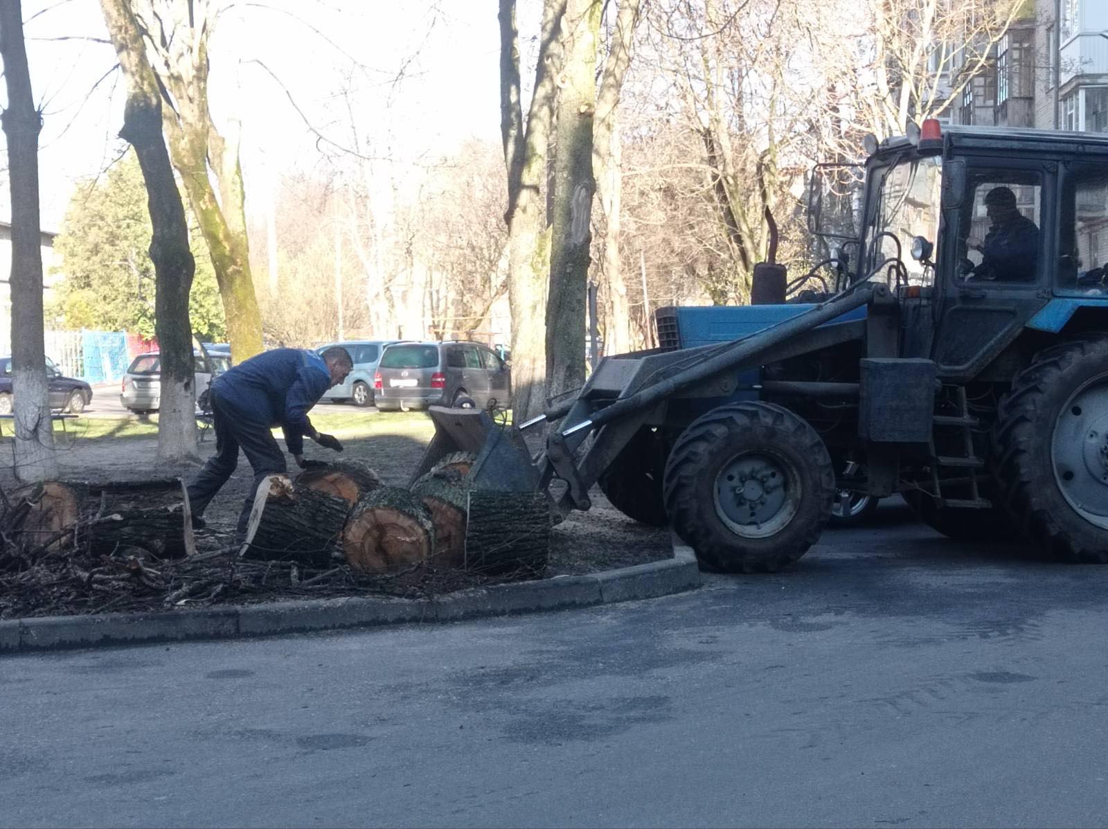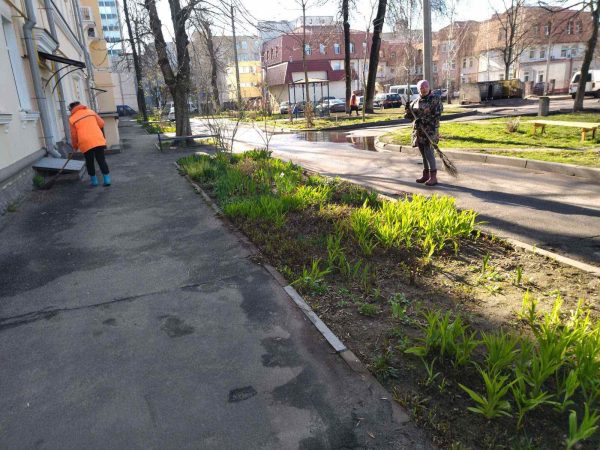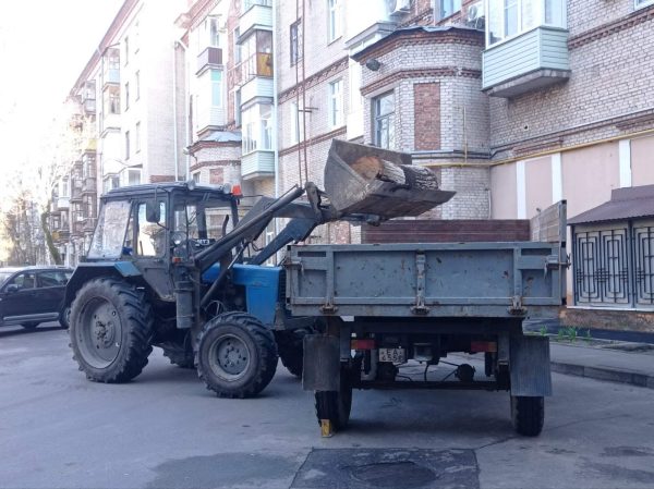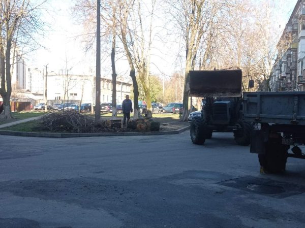Городская акция «чистый четверг» проходит в Центральном районе г.Гомеля. Работы по благоустройству дворовой территории жилых домов по проспекту Ленина 12, 14. Работники государственного предприятия «Центральное» осуществляют вывоз удаленных аварийных деревьев, проводят комплексную санитарную очистку дворовой территории (проезжей части и пешеходных дорожек).