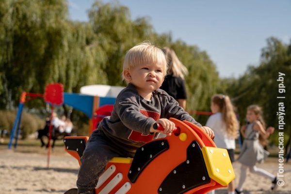 В канун празднования Дня города Гомеля на пересечении улиц Свиридова и Петруся Бровки в живописном месте каскада Волотовских озер открыли многофункциональную спортивную площадку и детский игровой городок.