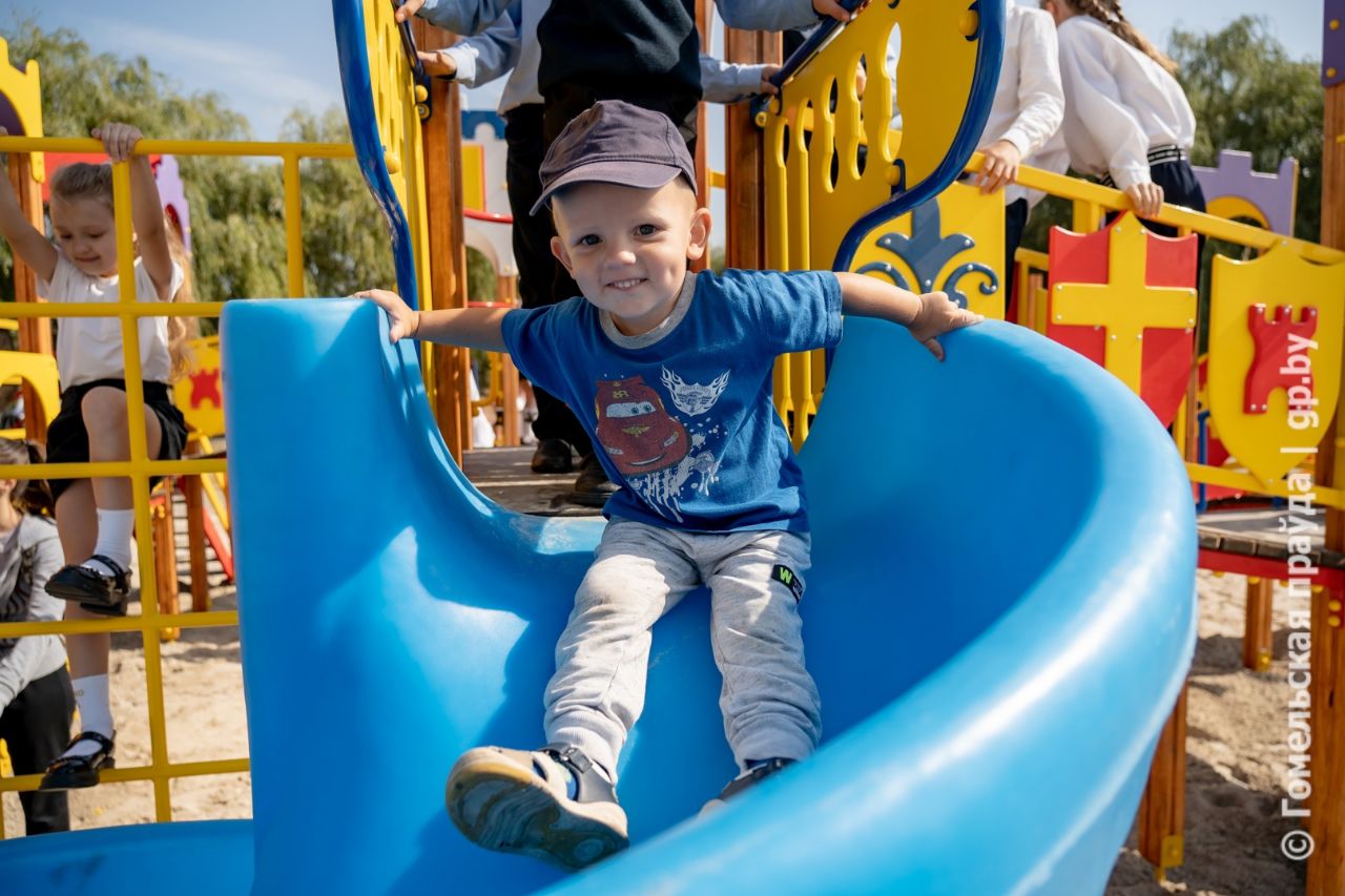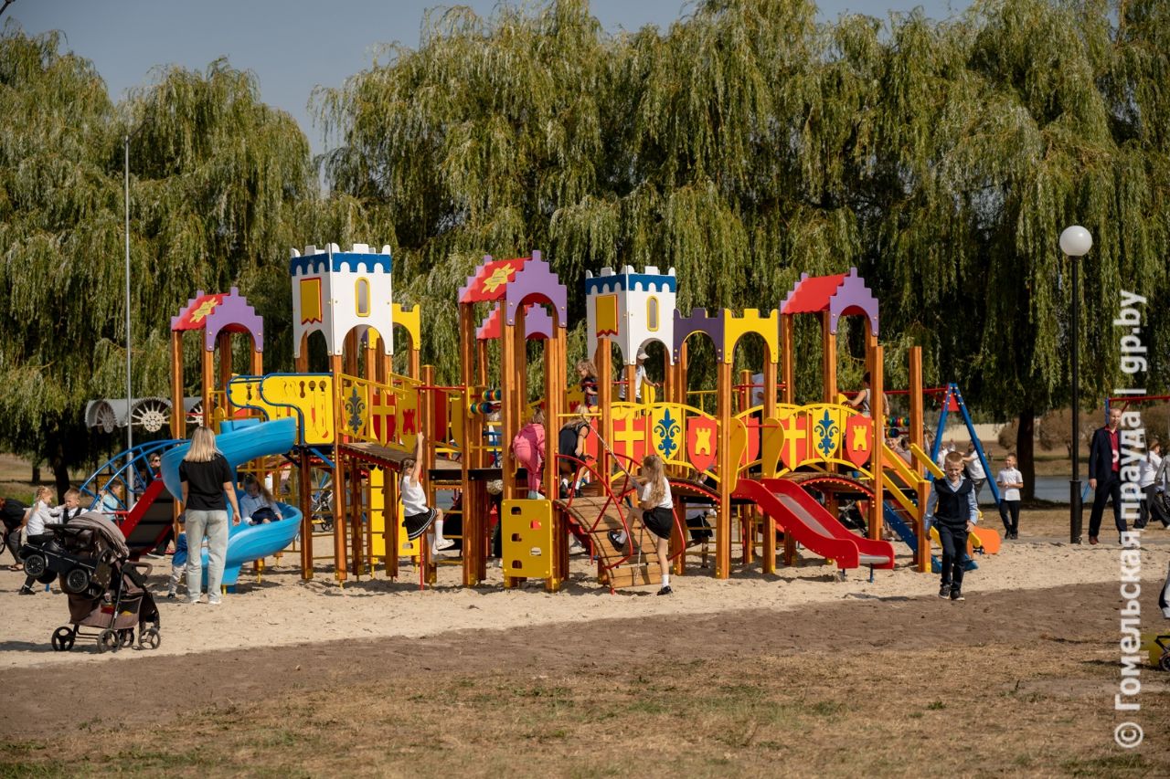 В канун празднования Дня города Гомеля на пересечении улиц Свиридова и Петруся Бровки в живописном месте каскада Волотовских озер открыли многофункциональную спортивную площадку и детский игровой городок.