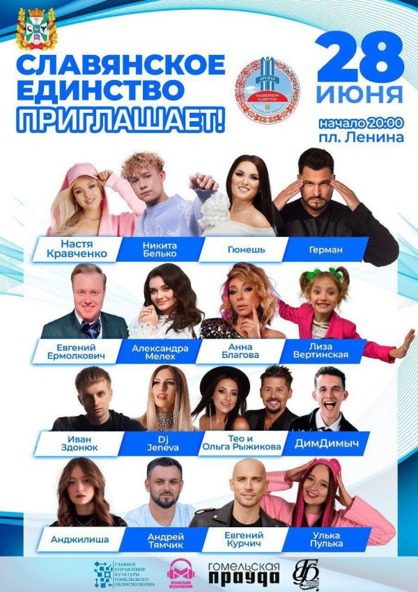 В рамках фестиваля «Славянское единство» в Гомеле пройдет большая молодежная дискотека с участием белорусских и российских артистов, радиоведущих, блогеров.