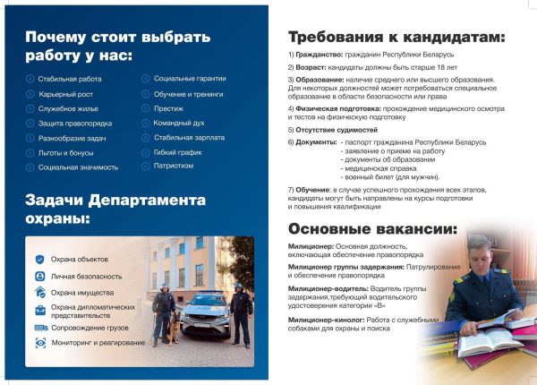Приглашаем на службу в Центральный отдел г. Гомеля Департамента охраны Министерства внутренних дел Республики Беларусь